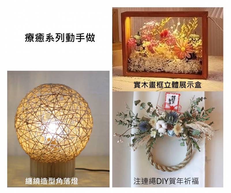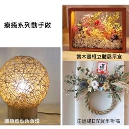銀髮創客之纏繞造型角落燈 /董玉蓉老師 | 1. 運用彩色棉麻線、纏繞出立體蛋型、LED杉木燈 2. 24小時不斷電、陪伴身邊的人 3. 營造生活美學。 |